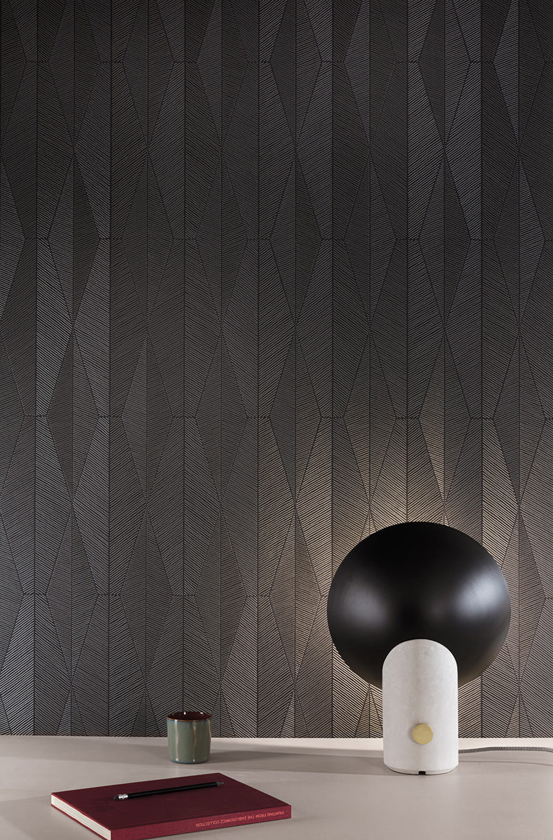 Tilfør dit hjem en markant og moderne atmosfære med Ari Dark fra Masureel. Tapetet er en del af den eksklusive kollektion The Texture Book og kombinerer grafiske linjer med en smuk dyb grå/sort farvepalette. Det geometriske mønster skaber både ro og dynamik, og de matte samt let skinnende detaljer giver væggen et luksuriøst touch.