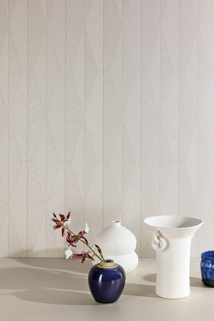 Ari Taupe fra Masureels eksklusive kollektion The Texture Book er et moderne og raffineret tapet, skabt til at tilføre rummet en følelse af ro og elegance. Det grafiske mønster består af facetterede linjer inspireret af naturens organiske strukturer, som skaber en subtil dybdeeffekt på væggen.