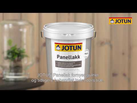 JOTUN Panellak er en mat, vandfortyndbar lak, der beskytter og fornyer træværk samtidig med, at den reducerer gulning. Den har et næsten transparent udseende, der fremhæver træets naturlige struktur, og kan tones i hvidlige eller lyse nuancer.