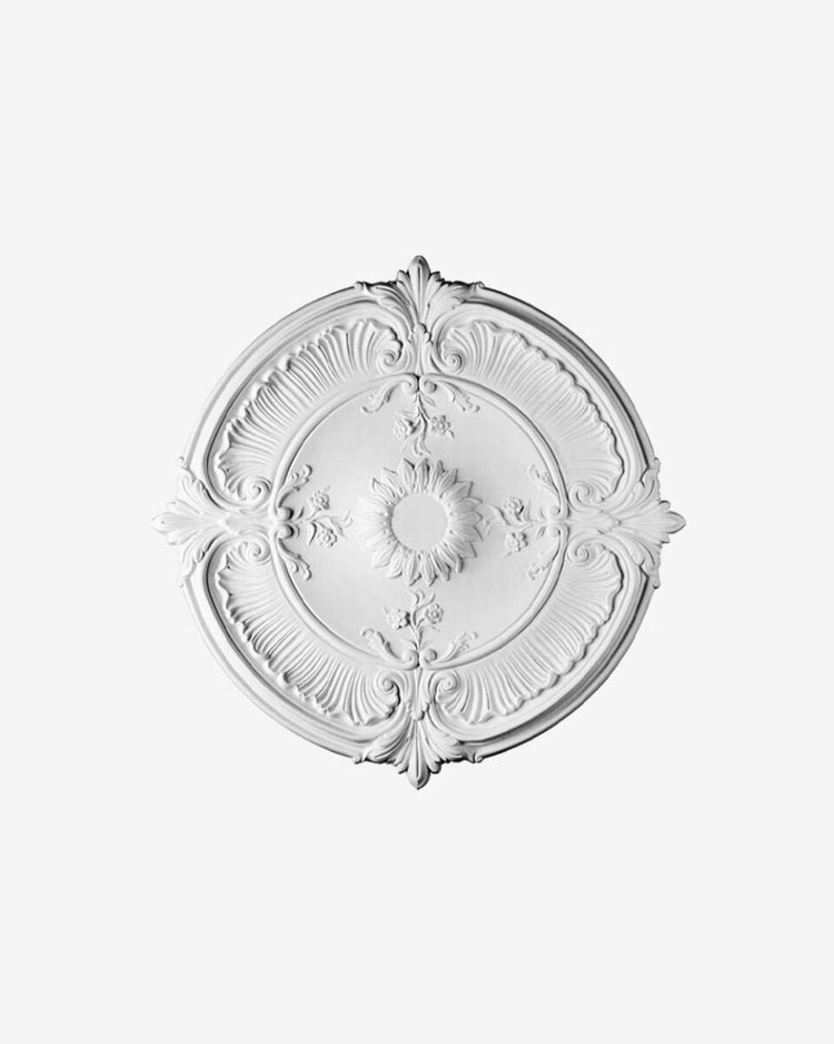 Med en diameter på 70 cm er R73 perfekt til rum med højt til loftet, hvor den kan udfolde sin fulde pragt. Rosetten er fremstillet i let og slagfast Purotouch®, som sikrer en nem montering og lang holdbarhed. Overfladen kan males i enhver farve, så den passer perfekt ind i både klassiske og eksklusive interiører.