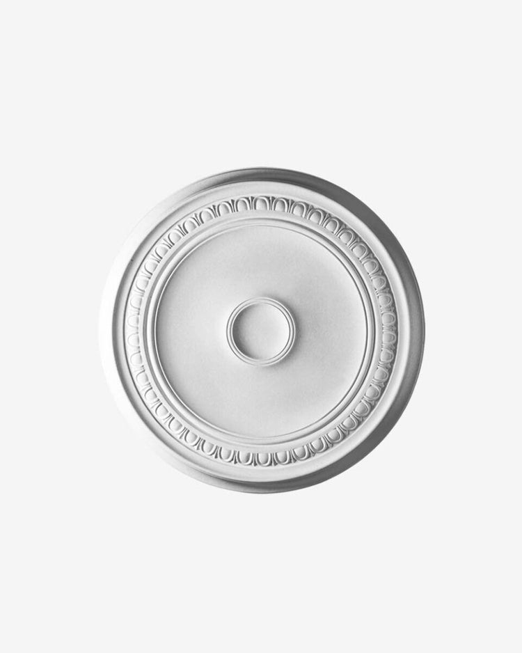 Med sin diameter på 62 cm passer R77 perfekt i rum med højt til loftet eller som markant midtpunkt i klassiske interiører. Den er fremstillet i let og slagfast Purotouch®, hvilket gør den nem at montere og male i enhver ønsket farve.